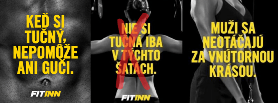 Problémové sú tiež vizuály, ktoré využívajú mýtus krásy a prepájajú ho s tzv. bodyshamingom (teda s výsmechom ľudí, ktorých telá sa tomuto mýtu vymykajú). Výrazným príkladom z tejto kategórie je tento rok kampaň posilňovne FITINN, ktorá sa snaží získať klientov a klientky zosmiešňovaním a ponižovaním.