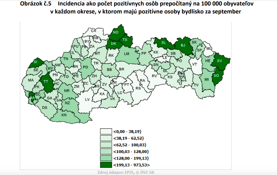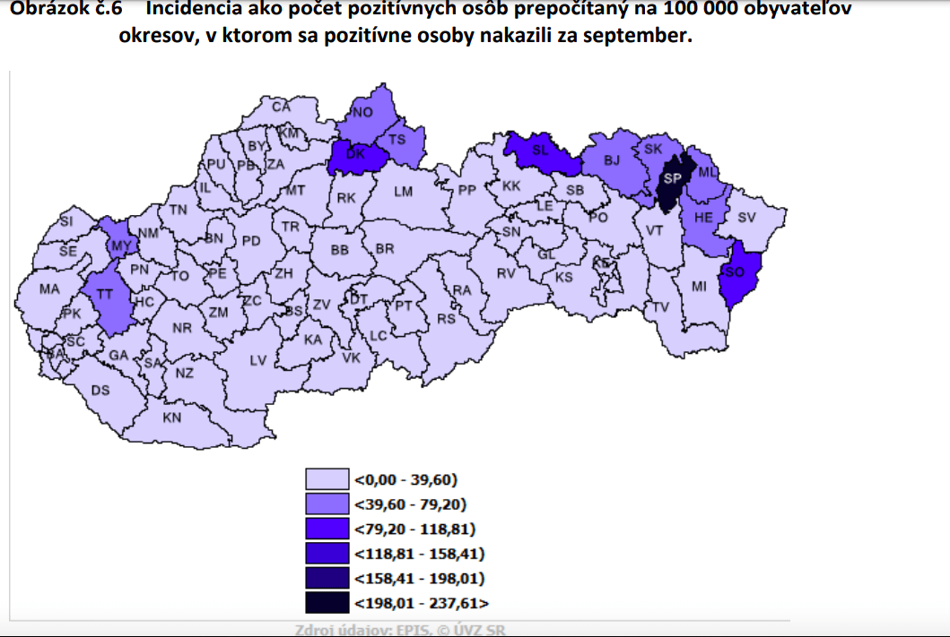 „Do analýzy bolo za sledované obdobie zahrnutých 7084 prípadov ochorení pozitívnych osôb, u ktorých bolo vykonané epidemiologické vyšetrovanie a spracované všetky epidemiologické charakteristiky. Za dané obdobie bolo vykonaných 123 245 testov, čo je o 49 823 testov viac ako v auguste. Z nich bolo prvýkrát pozitívnych 7084 testovaných, t.j. 5,7 %. V priemere každý deň bolo zistených 230 nových pozitívnych prípadov. Za celé obdobie je v systéme EPIS evidovaných celkom14 719 prípadov pozitívnych osôb,“ uvádza sa v analýze.