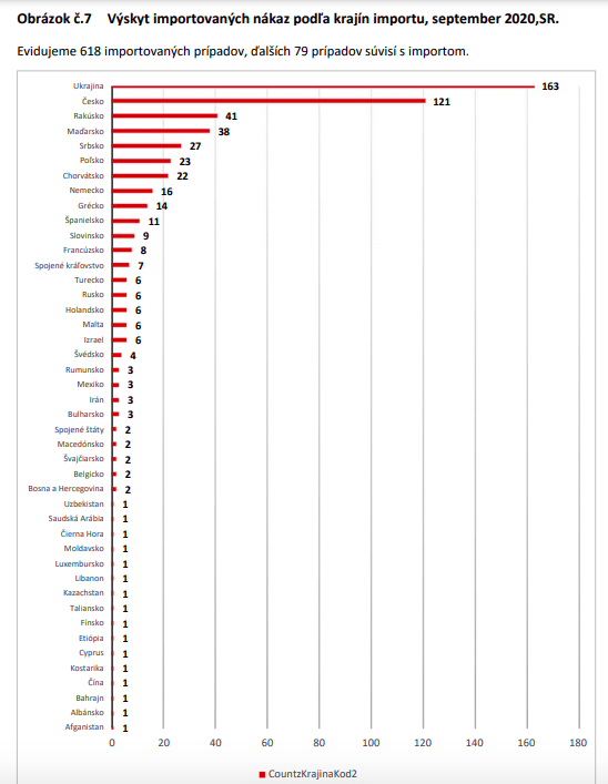 V lete sme si nákazu nosili zo zahraničia, dnes to už neplatí. V septembri bol podiel importovaných prípadov len 8,7 percenta, teda celkovo 618 importovaných prípadov. Ďalších 79 prípadov s importom súvisí.