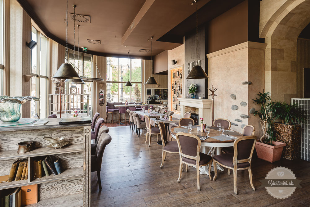 Interiér reštaurácie pôsobí decentne a čisto, no jemnými prvkami a pekným stolovaním najmä v prednej časti reštaurácie razom dostane aj slávnostný ráz. “Dedičstvo” po predchádzajúcom majiteľovi sa menilo postupne a s citom. V spolupráci s architektom stavili na príjemné a zemité farby, steny v krémovej a fialovej farbe zdobia sklenené diela od umelca Achilleasa, doplnené boli aj nové svietidlá. Zadná časť patrí fajčiarom, vďaka unikátnemu odvetrávaniu, ako sme sami na vlastnej koži zistili, sa bude komfortne cítiť aj nefajčiar. Premenou prešiel aj bar, a hoci menší priestor dáva niekedy počas návalu čašníkom pod vedením Mariána Rázgu zabrať, na úsmeve im to neuberá.