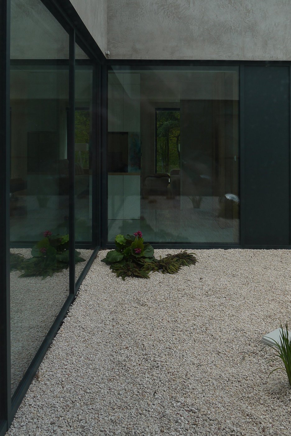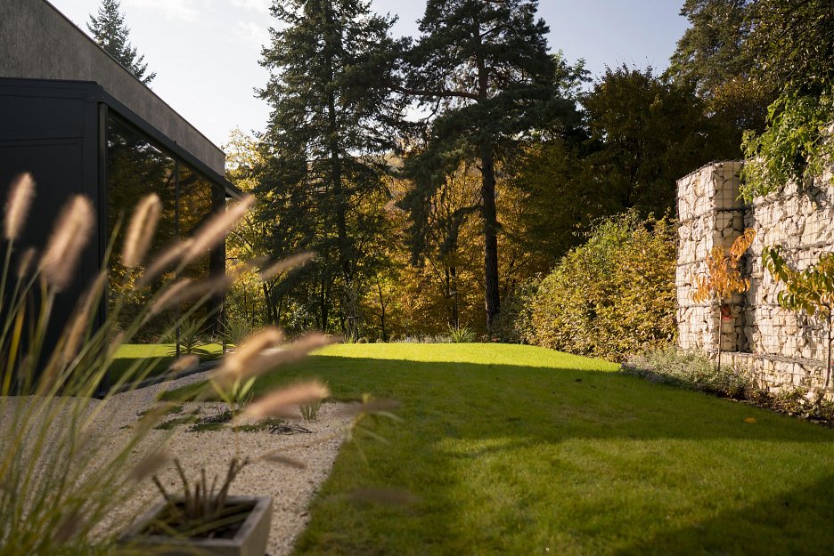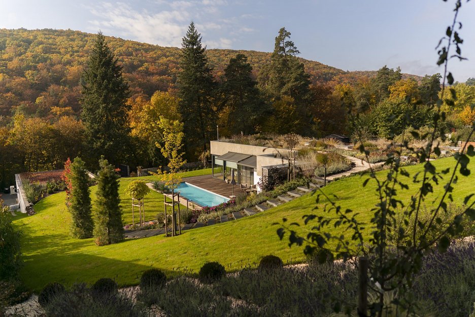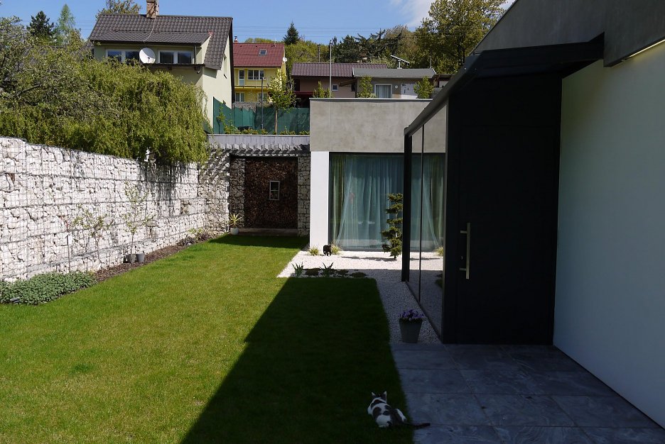 Prezentované riešenie ukazuje aj iný pohľad. Že nie iba samotná forma objektu je dôležitá. Práve naopak. Stavba môže byť i triviálna, nenápadná. Tvorená iba obyčajnými pravouhlými plochami omieky, skla, výplní, kamennými múrikmi… Pomocou týchto nástrojov však šikovní architekti v tomto prípade prioritne formujú priestory, nie fasádu. Tie chránené pred počasím v interiéri, i tie okolo domu. Nielen v blízkych, ale i v ďalekých súvislostiach, viažúcich sa na krajinu a jej vnímanie.