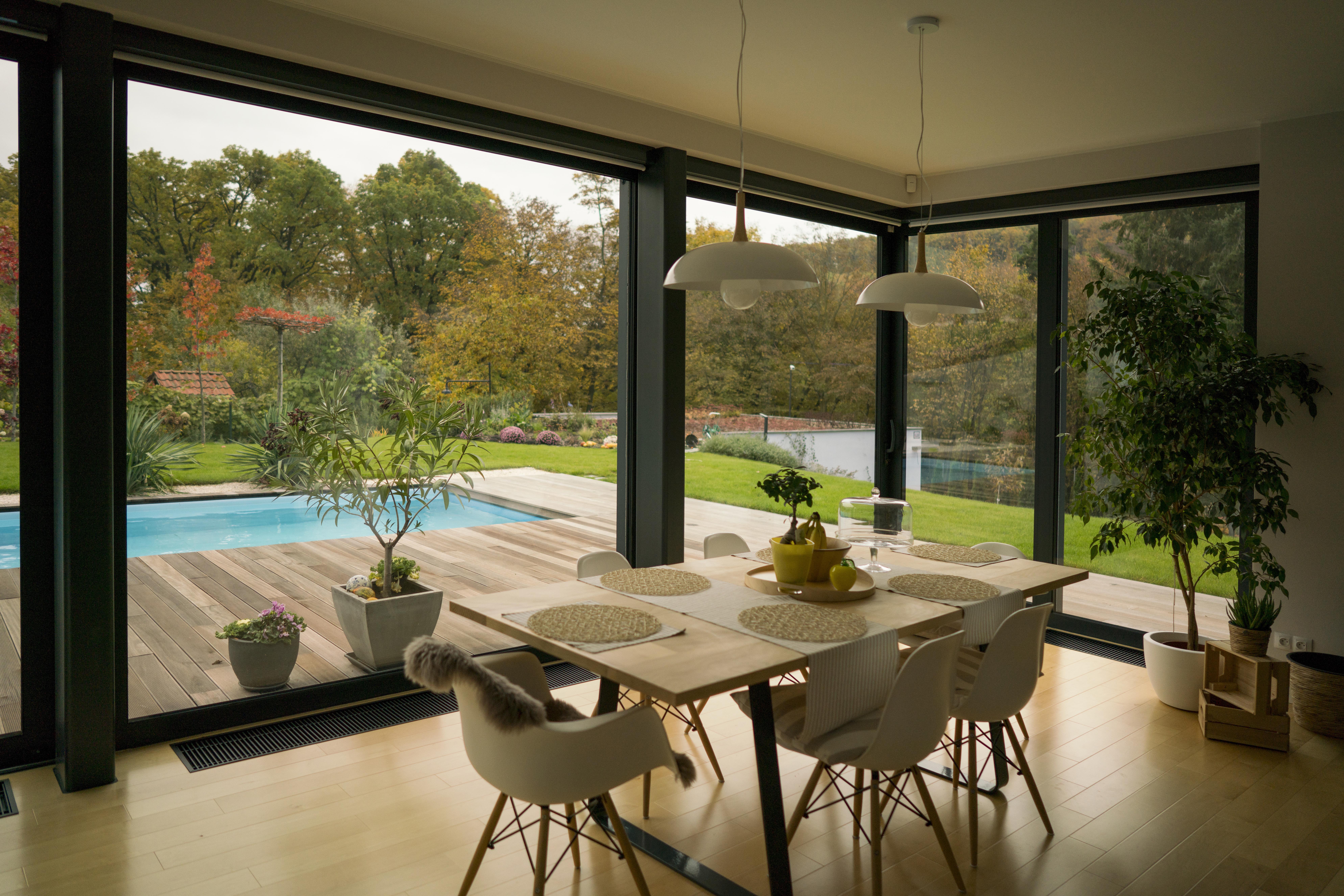 Priestory i zariadenie môžu byť voľne vymedzené. Poprepájané. Ak však koncept má „hlavu i pätu“, nápad a cit, tak výsledkom môže byť príjemné (i dobre fungujúce a podnetné) prostredie pre život rodiny (i ľudí v okolí). A najmä neničíme si živú prírodu okolo nás. Je to riešenie značne kontextuálne. A naviac v takomto dome nemáme obmedzený priestor. V priaznivých ročných obdobiach sa obytné priestory nielen dojmovo, ale aj funkčne môžu rozšíriť na celú plochu parcely. Nemusíme bývať iba „za múrmi“. Je to jedna z možných foriem k návratu k celodennému kontaktu so živou krajinou (čoraz zriedkavejší druh bývania).