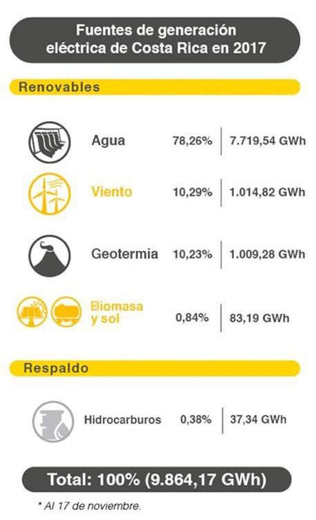 Kostarický inštitút pre elektrickú energiu zverejnil nedávno správu, v ktorej sa píše že rekord z roku 2015 bude určite prekonaný. Výkonný prezident inštitútu, Carlos Manuel Obregón, sa vyjadril že, zmeny v oblasti sietí a modernizácie elektrární, ktoré vyrábajú čistú energiu boli hlavným dôvodom na dosiahnutie takéhoto čísla.