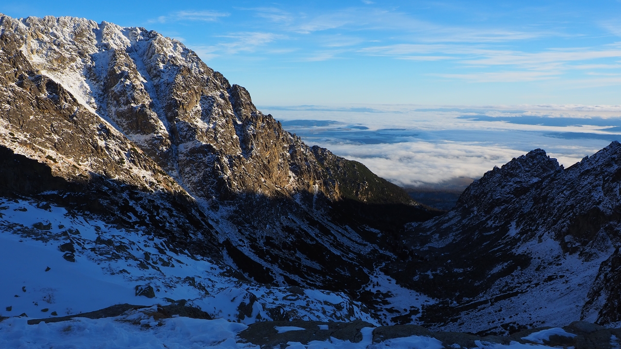 - Zasnežené, zamrznuté obry nad hlavou a husté oblaky vďaka inverzii priamo pod tebou