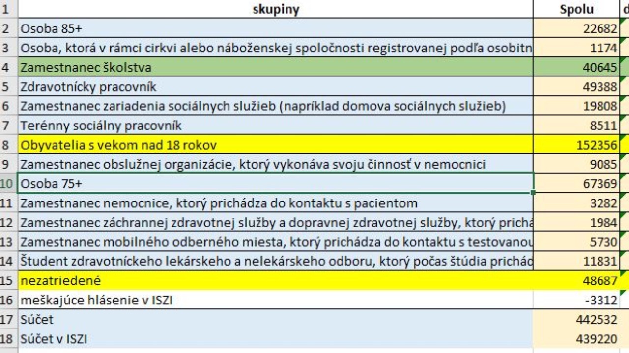 Zarážajúci je však fakt, že tretina vakcinačných dávok bola podaná skupine ľudí nad 18 rokov. No, danou skupinou sa nemyslia zdravotníci ani učitelia. Tí sú v systéme evidovaní zvlášť. Ide o počet 152 356 z celkového počtu 442 532.