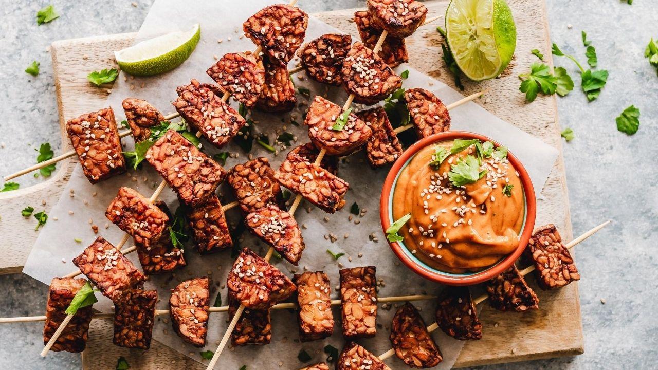 Je to jendoznačne tempeh. Na svete existuje množstvo druhov tohto produktu. Je, rovnako ako tofu, vyrábaný zo sóje, no pripravuje sa z častí bôbov, jeho chuť je mierne odlišná, samozrejme, záleží aj od korením a marinovania.