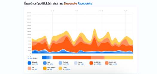 Web populi.sk mapuje, ako sa na sociálnych sieťach darí politickým stranám. Z grafu jednoznačne vyplýva, že zásah bývalého premiéra Matoviča na Facebooku neznamená, že sa bude rovnako dariť aj stránke jeho strany. Počas posledného obdobia sa najlepšie darí súčasnej opozícii, na čele so stranou Smer-SD a Hlasom. Veľké množstvo ľudí oslovuje aj ĽSNS, ktorá podobne ako samotní podporovatelia, tiež na komunikáciu využíva nenávistné prejavy či dokonca hoaxy.