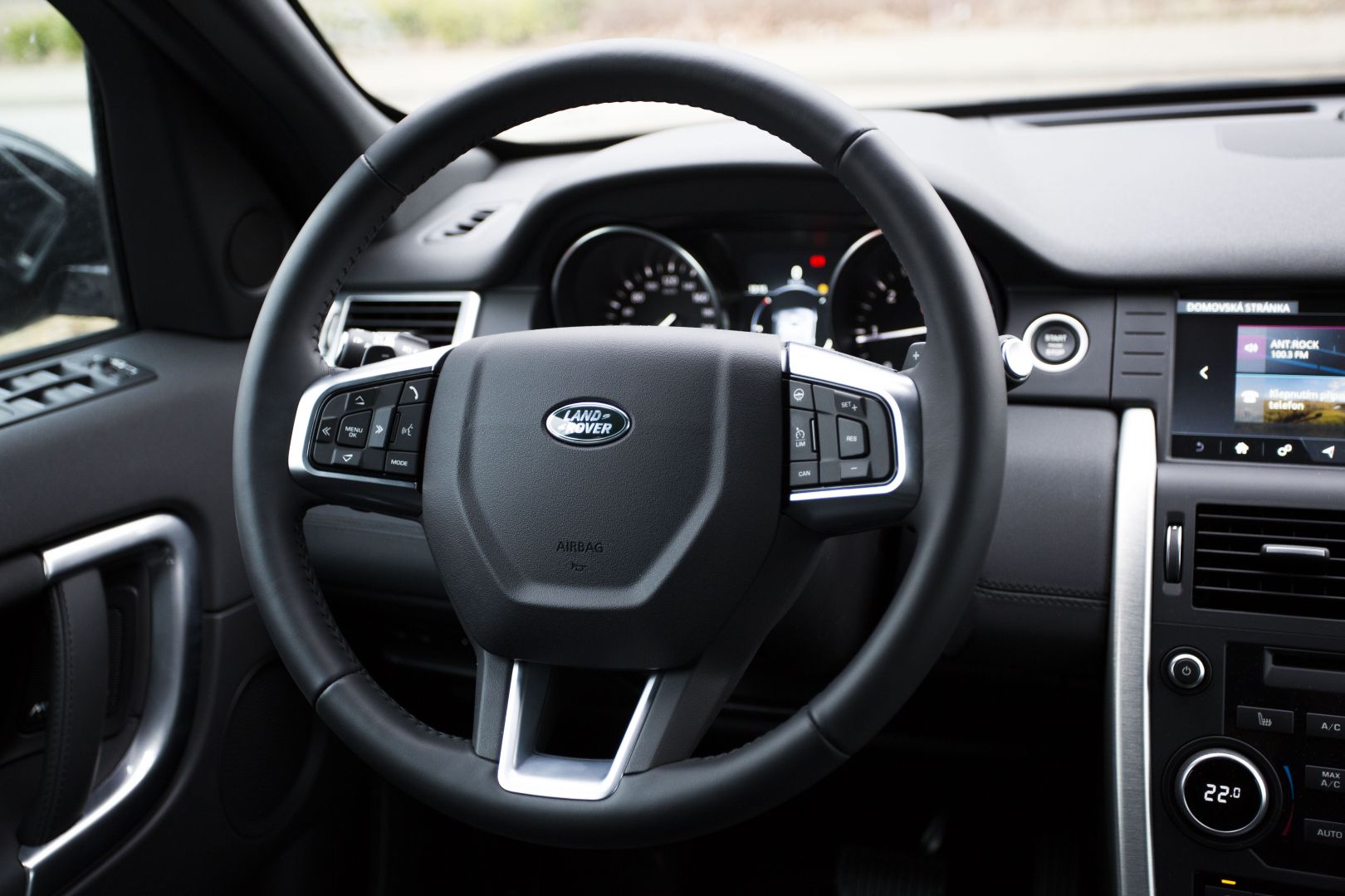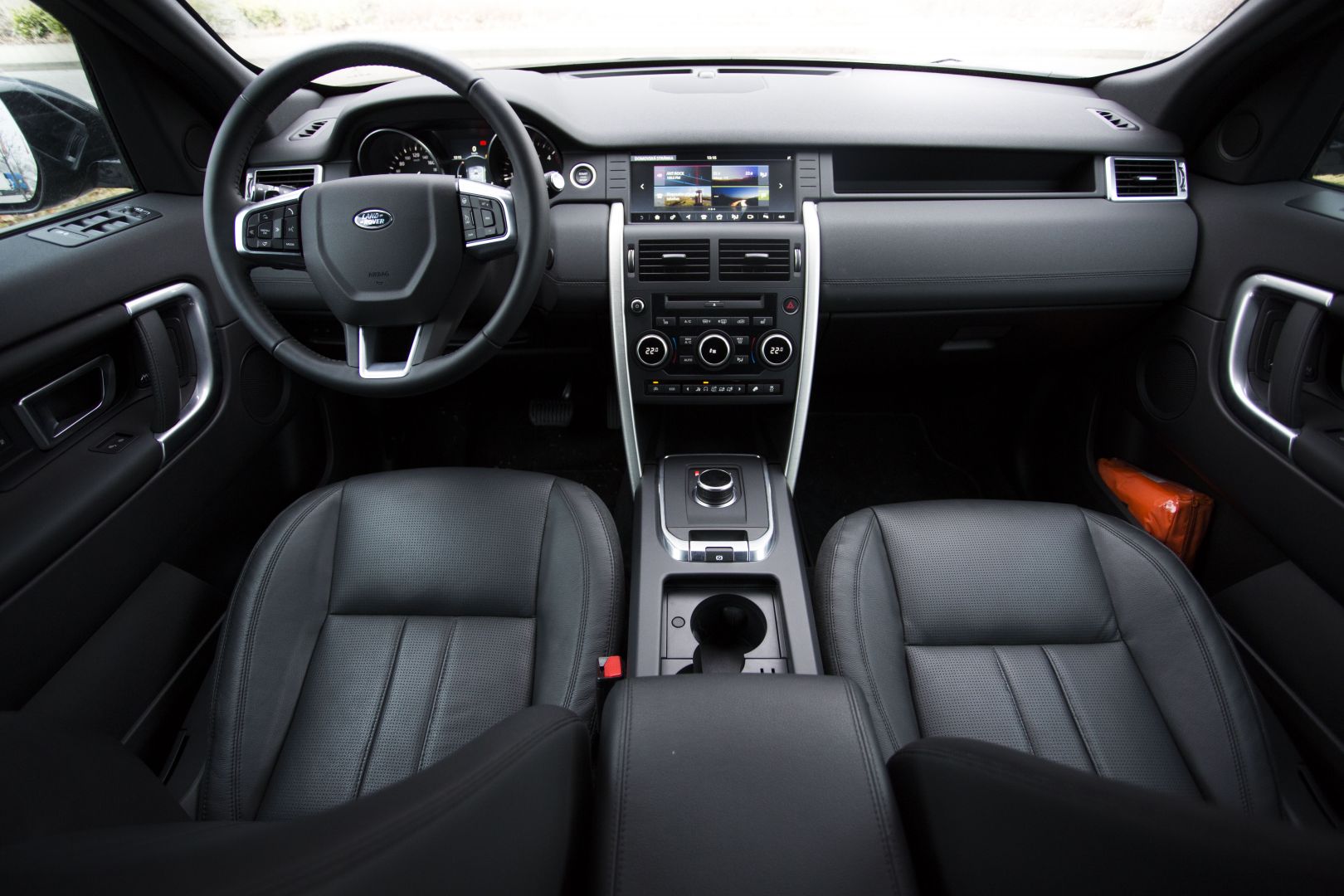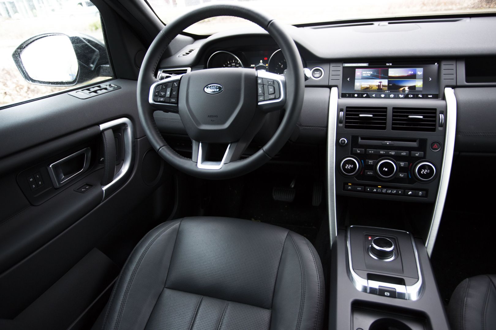 Po sadnutí za volant sa cítim ako v celkom známom prostredí, presadol som sem totiž z Jaguaru F-Pace. Nevyzerá síce až tak luxusne, o to viac z interiéru cítiť odolnosť. Ergonómiu a jednoduchosť obsluhy palubných systémov však hodnotím rovnako pozitívne. V rámci koncernovej spolupráce má Land Rover s Jaguarom viacero spoločných prvkov v interiéri, veľmi rýchlo už po týždni dokážem obsluhovať aj infotainment na dotykovej stredovej obrazovke. Má síce skromnejších 8 palcov, ale logika menu, veľkosť virtuálnych tlačidiel aj rýchlosť reakcií sú na dobrej úrovni. Má horšie rozlíšenie iba 800×480 bodov, okrem toho však ťažko niečo vyčítať.