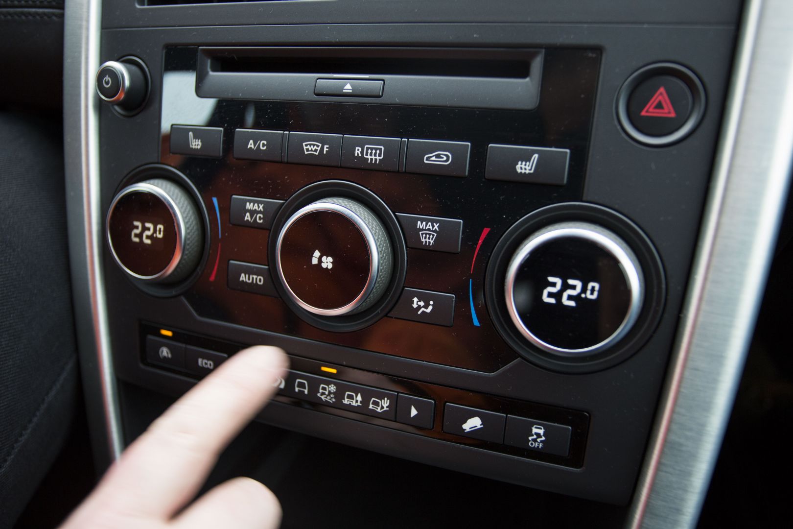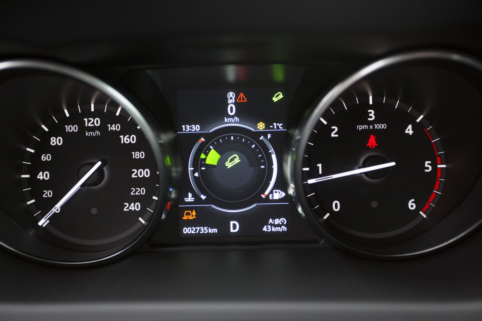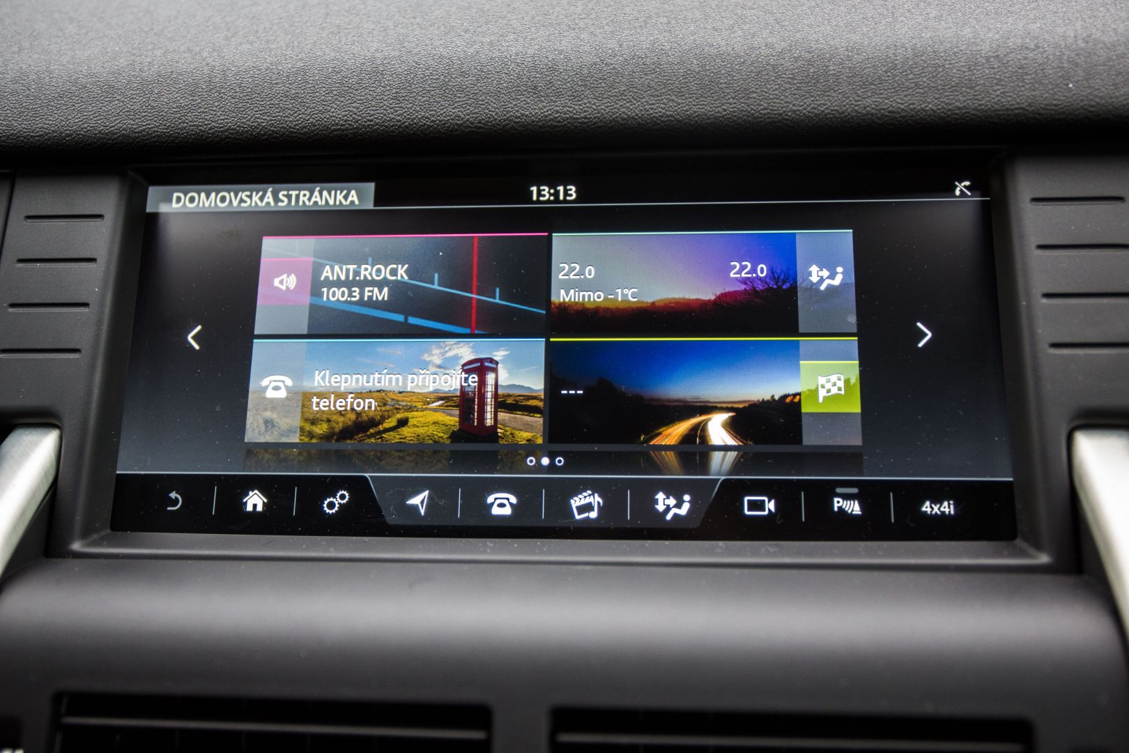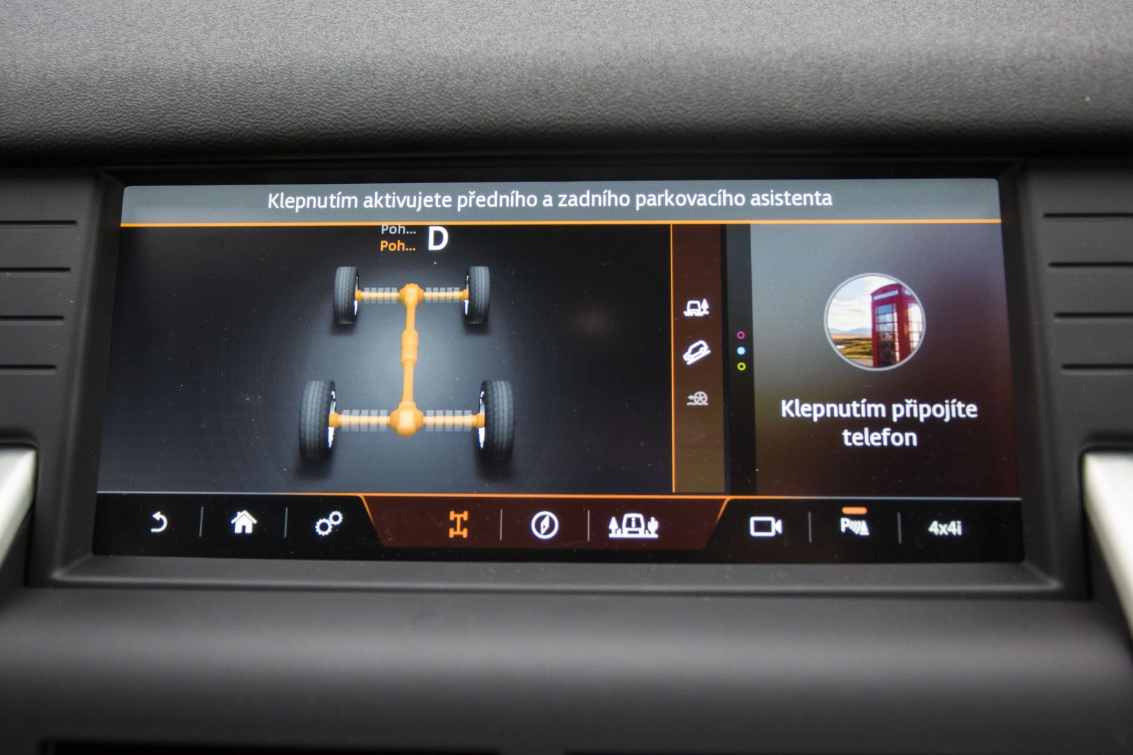 Po sadnutí za volant sa cítim ako v celkom známom prostredí, presadol som sem totiž z Jaguaru F-Pace. Nevyzerá síce až tak luxusne, o to viac z interiéru cítiť odolnosť. Ergonómiu a jednoduchosť obsluhy palubných systémov však hodnotím rovnako pozitívne. V rámci koncernovej spolupráce má Land Rover s Jaguarom viacero spoločných prvkov v interiéri, veľmi rýchlo už po týždni dokážem obsluhovať aj infotainment na dotykovej stredovej obrazovke. Má síce skromnejších 8 palcov, ale logika menu, veľkosť virtuálnych tlačidiel aj rýchlosť reakcií sú na dobrej úrovni. Má horšie rozlíšenie iba 800×480 bodov, okrem toho však ťažko niečo vyčítať.