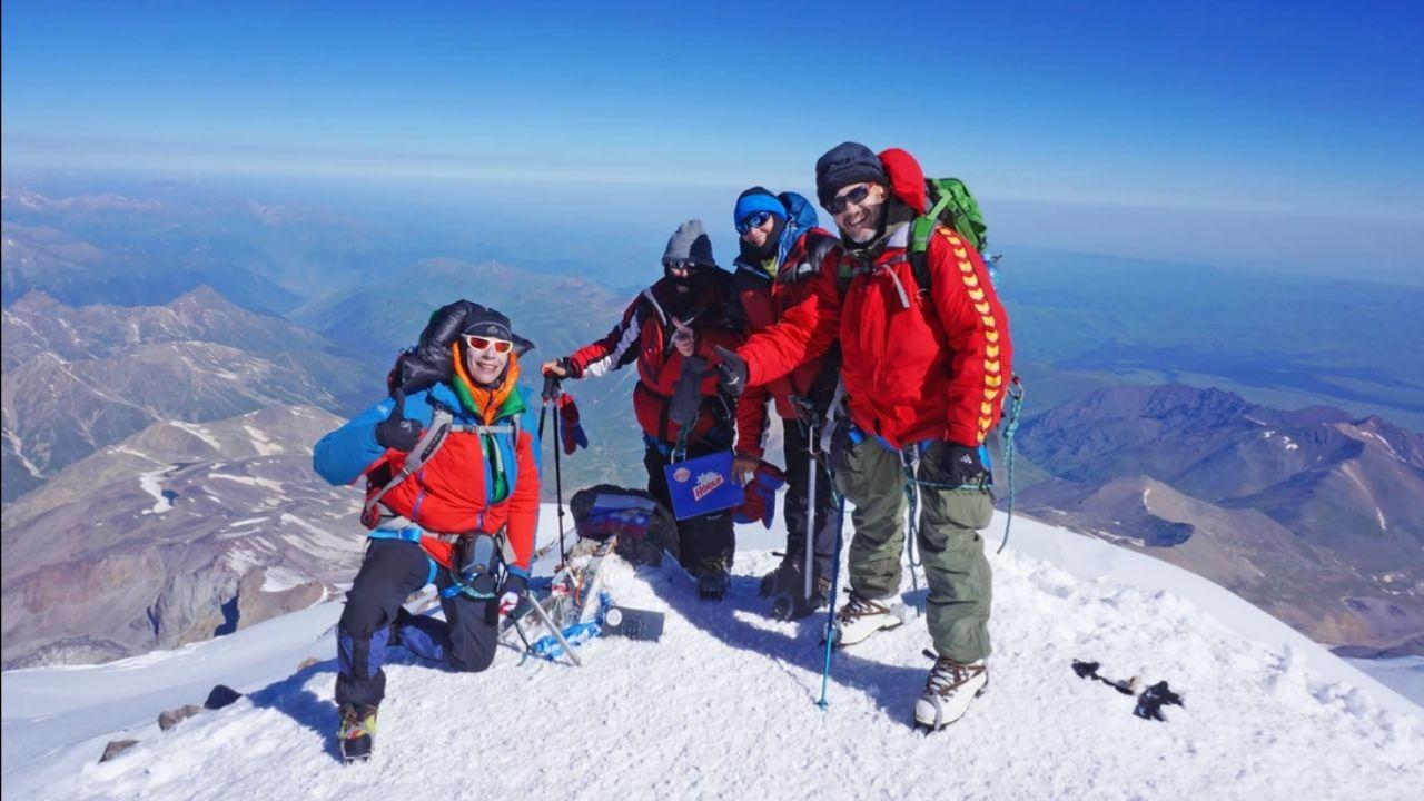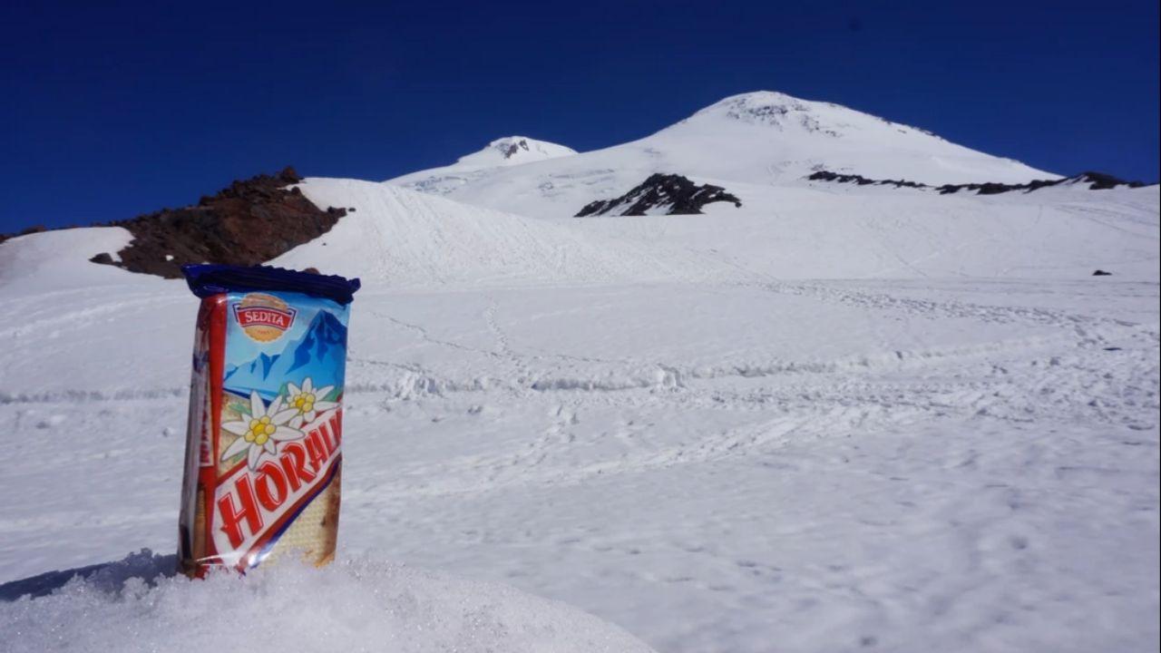 Na nasledujúcich fotografiách sa sladká drobnosť nachádza na najvyššom vrchu Ruskej federácie s názvom Elbrus. Svojou výškou 5 642 m n. m. už z diaľky víta turistov. Fotografia zachytáva výstup na tento neaktívny vulkán.