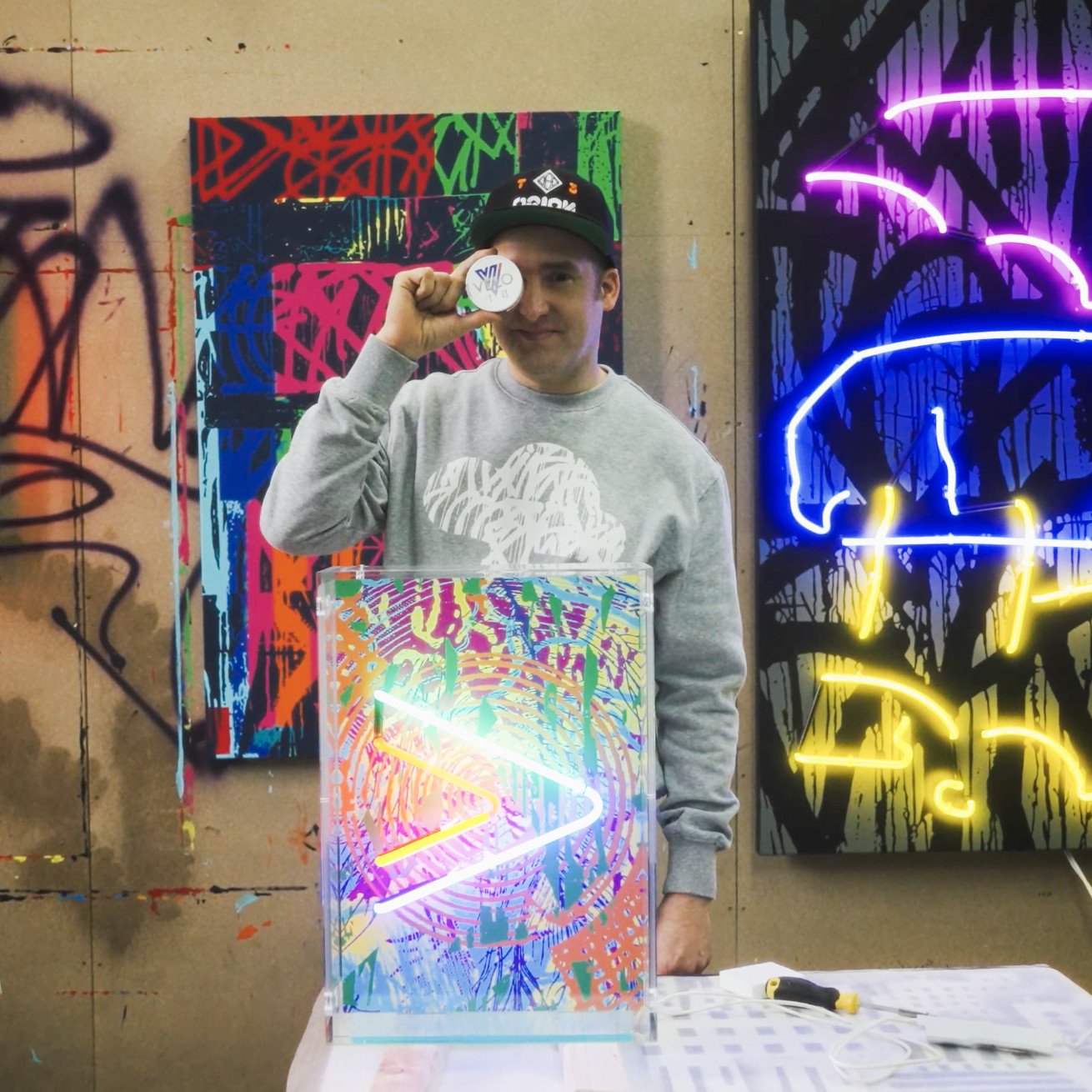Za výnimočný zjav je však považovaný v celej Európe. Jeho tvorba je silne ovplyvnená graffiti aj streetartom. Prevládajú v nej veľkoformátové nástenné maľby, často doplnené o priestorové konštrukcie z neónových trubíc a drôtov.