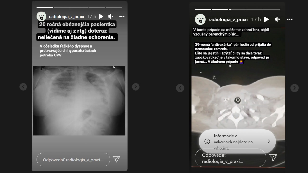 Profil Rádiologia v praxi uverejnil na sociálnej sieti Instagram niekoľko znepokojujúcich nálezov u kovidových pacientov.