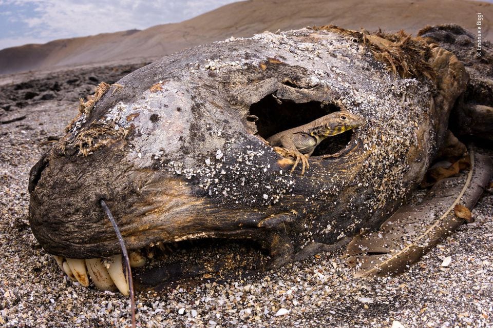 Zdochlinu morského leva sprevádzal neznesiteľný pach. Aj napriek ponurej atmosfére však pobrežie národnej rezervácie Paracas v Peru prekvitá životom. Dôkazom je najmä mladý samček leguána na mieste, kde kedysi bývala očná buľva. Je najedený a očivide aj spokojný – má miesto, kde sa môže ukryť pred pražiacim slnkom a relaxovať.