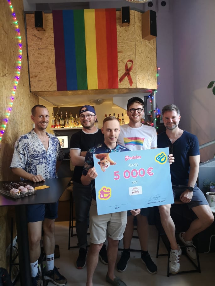Dedoles svoj prísľub splnil. Vyzbierané peniaze jeho tím odovzdal počas stretnutia so zakladateľmi Fondu pre podporu LGBT+ komunity v Nadácii Pontis. V podniku Tepláreň im odovzdali šek na 5 000 eur práve za kampaň Dúhové komentáre. Počas stretnutia zároveň diskutovali na tému „Ako pomôžem LGBT+ komunite na Slovensku?“