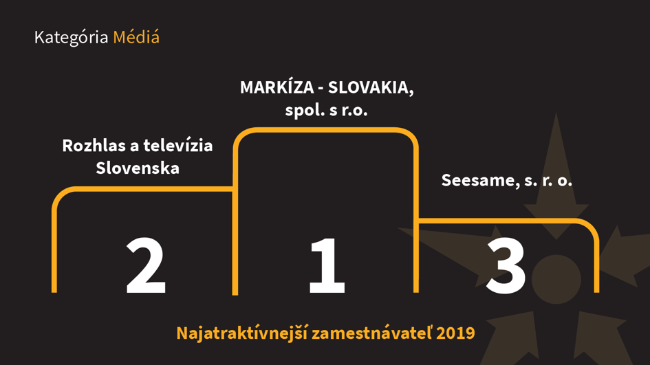 V kategórii Médiá zvíťazila televízia Markíza. Konkurenciou im boli známe mediálne domy ako News and Media Holding, a.s., Petit Press, a.s. či Slovenská produkčná. Spomedzi všetkých nominovaných si spoločnosť Markíza počínala vo všetkých spomínaných atribútoch najlepšie.