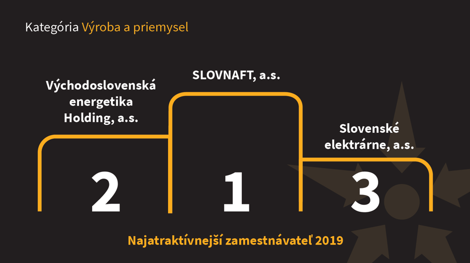 Vo výbere v kategórii Výroba a priemysel sa nachádzal napríklad Heineken Slovensko, Jaguar Land Rover Slovakia, Nestlé či Matador Group. Už po niekoľký raz však zvíťazil Slovnaft. Stabilné miesto si drží aj Východoslovenská energetika Holding, a.s.