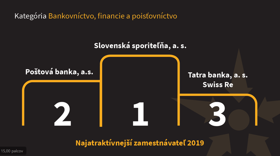 Bankovníctvo, financie a poisťovníctvo si každý rok viac-menej vymieňajú priečky. Väčšinou sa tam totiž umiestňujú stále rovnaké mená. Tento rok sa víťazom stala Slovenská sporiteľňa. Konkurenciu majú ale statočnú, banky ako VÚB, poisťovňa Kooperativa, UniCredit Bank, RSC Raiffeisen Service Group Center – to všetko sú zvučné mená, ktoré zabojovali o priazeň svojich zamestnancov.