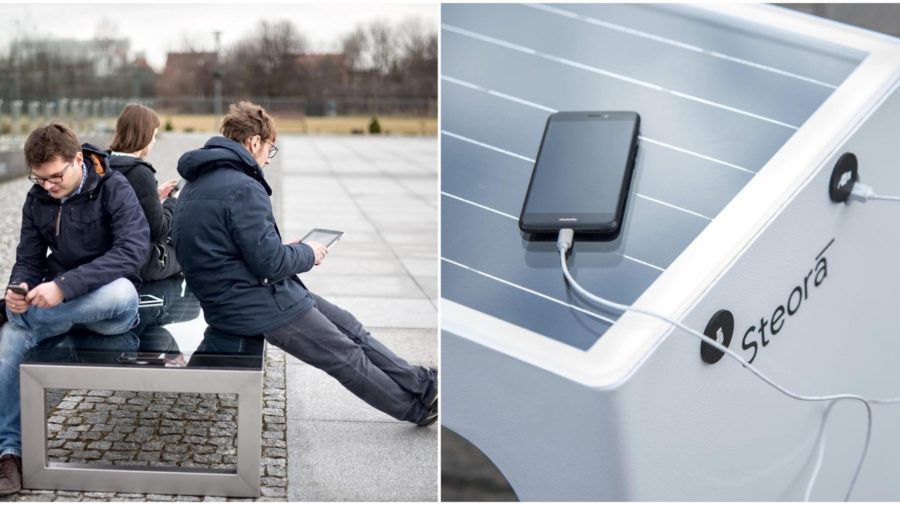 - Inteligentná lavička živená solárnymi panelmi ponúka nabíjanie smartfónov pomocou USB portu alebo bezdrôtovo
