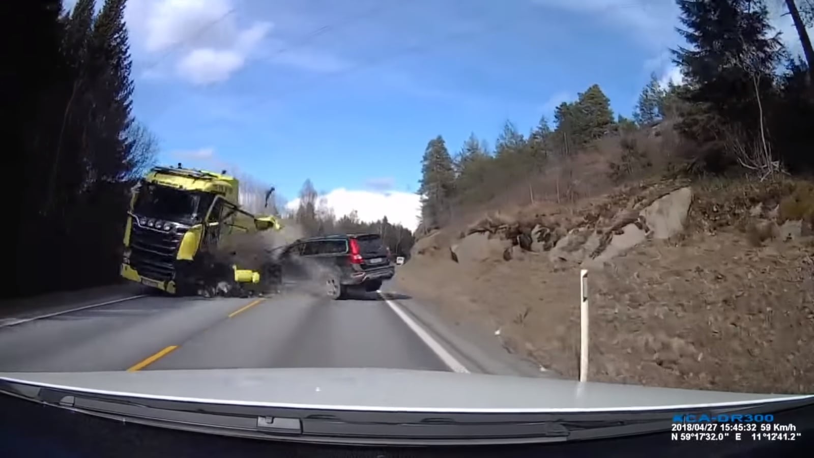 Ako môžeme vidieť na videu, Volvo plnou silou vrazilo do omnoho robusnejšieho nákladného vozidla, čo pochopiteľne úplne zdemolovalo prednú časť vozidla. Výstuhy a bezpečnostné prvky umiestnené v čele vozidla ochránili priestor cestujúcich, ktorý ostal viac menej neporušený a náraz ho nezdeformoval. Rovnako si môžeme všimnúť, že ani predný stĺpik neutrpel vážne poškodenie či deformáciu, vďaka čomu ostal vodič v bezpečí.