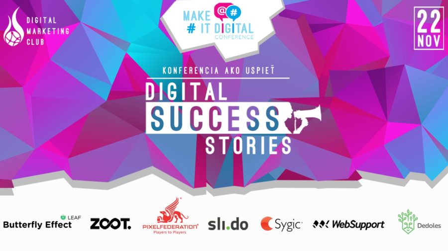 • Chceš si vypočuť a inšpirovať sa úspešnými digitálnymi príbehmi spoločností, ktoré sa dokázali dostať medzi špičku na našom ale aj svetovom trhu? Ak si odpovedal ÁNO, tak prichádza po troch úspešných, už štvrtá konferencia z dielne Digital Marketing Clubu s názvom Digital Success Stories. Oslovili sme top spoločnosti, ktoré sa neprídu pochváliť svojimi úspechmi, ale prídu najmä odovzdať praktické rady a skúsenosti, ktoré v živote skôr či neskôr určite využiješ.