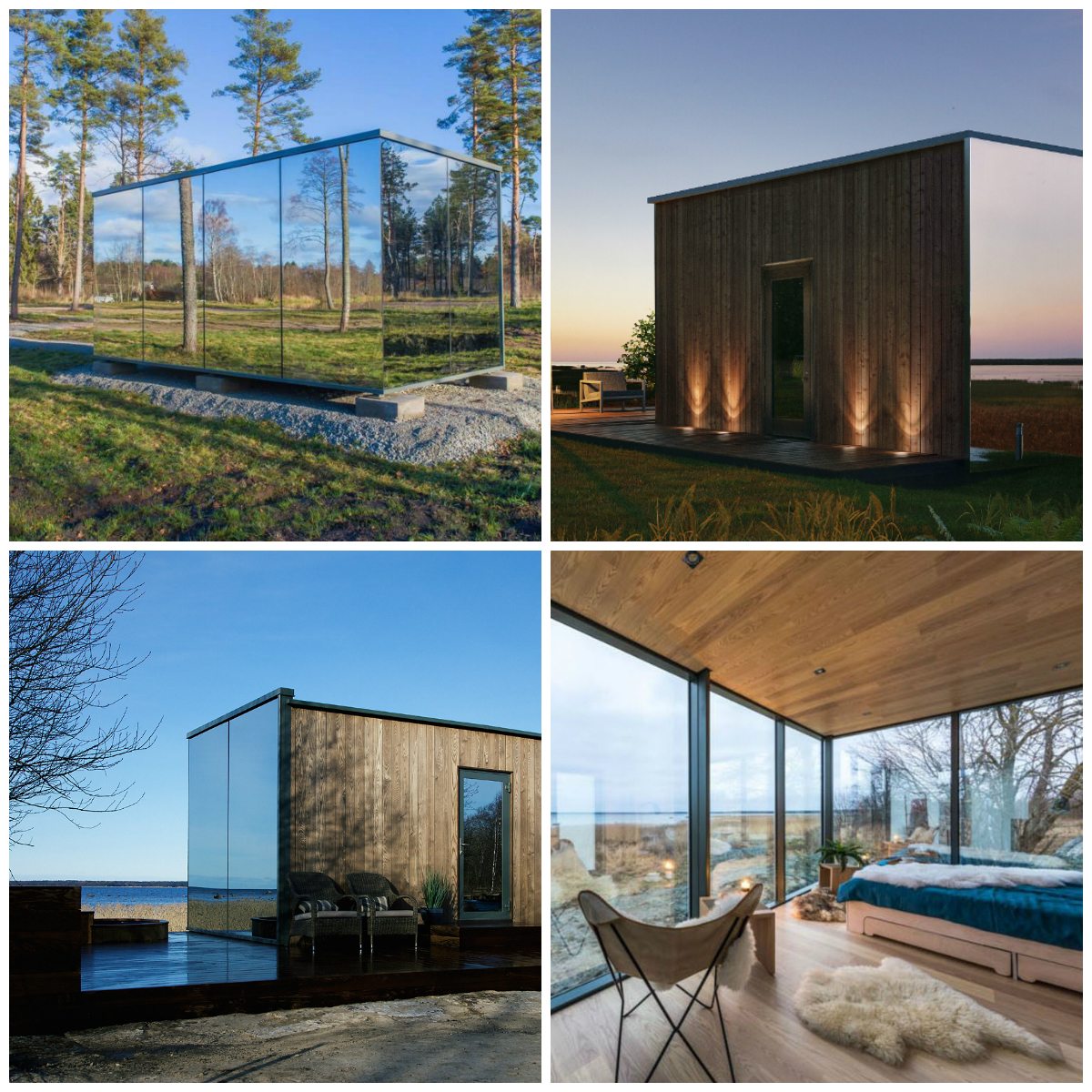 Jaak a Adreas Tiikovci z estónskeho Tallinu majú na svedomí projekt domčekov so zrkadlovou fasádou, ktoré v priestore rozpovedia svoj vlastný príbeh. Štúdio ÖÖD prišlo s prefabrikovanou stavbou, ktorá môže stáť kdekoľvek si klient zažiada už za 8 hodín. Hlavnými hodnotami projektu prechodného bývania veľkého len pár metrov štvorcových má byť prepojenie funkcionality a pohodlia. Až tri zo štyroch vonkajších stien stavby sú zrkadlové a domček tak dokonale zapadne do akéhokoľvek prostredia. Interiér je ladený pri rozdielnom využívaní podľa potrieb klienta, no to všetko len na rozlohe 18 m2. Môže to byť nahrávacie štúdio, joga room, drobný hotel alebo pracovňa. Za takéto mini bývanie by si zaplatil 33 000 €.