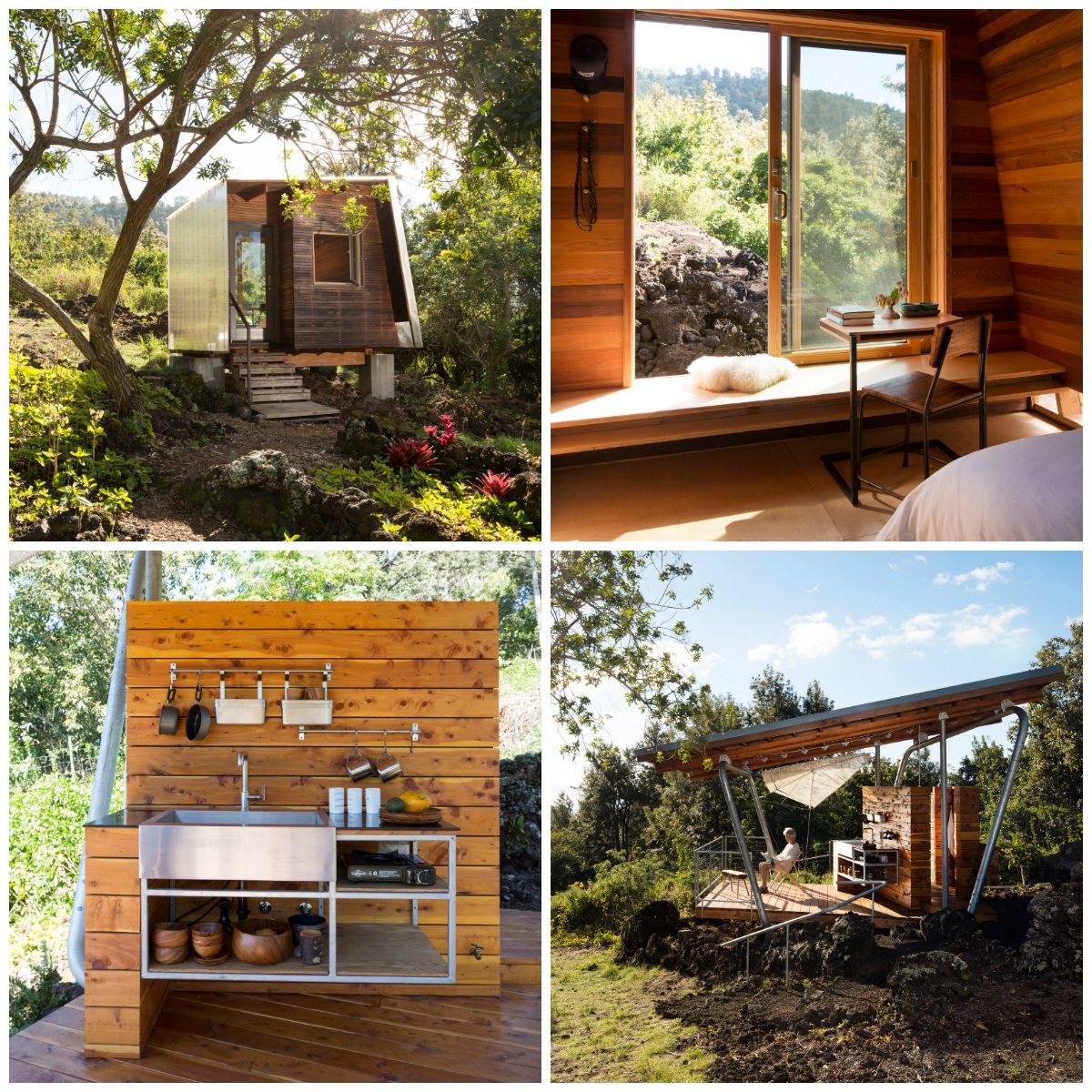 Zo severu sa presunieme pod horúce slnko na Havaj. Tu stoja dva samostatné mini objekty, ktoré sú ideálnym miestom pre milovníkov života v divočine. Projekt má na svedomí štúdio FLOAT na čele s architektkou Erin Moore. Na 300 rokov nedotknutých kôpkach lávy sa rozhodla postaviť mini bývanie pre odvážlivcov. Jeden z domčekov dostal názov Mauka a ukrýva v sebe spálňu s malou pracovňou a výhľadom na okolité hory. Objekt je zvnútra aj zvonku obitý drevom, takže nájomník nestratí kontakt s prírodou. Druhá stavba Makai je prefabrikátom s konštrukciou z galvanizovanej ocele a pod strechou ukrýva záhradnú kuchyňu s oddelenou sprchou. Tu výhľad smeruje priamo na nekonečný Pacifik.