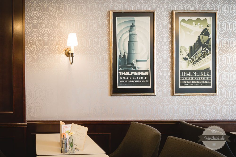 Thalmeiner patrí k stáliciam slovenskej kaviarenskej scény a zároveň k tomu najlepšiemu, čo na Slovensku máme. Do detailov vyšperkovaný interiér pozostáva z niekoľkých častí, pretože ako kaviareň starne, tak aj rastie. Na kvalite jej to však neuberá. Prvá, pôvodná časť v sebe nesie punc ráznej elegancie, ktorú podporili masívne nábytky, ale aj detaily v podobe mozaikovej podlahy, či obrazov s kaviarenskou tematikou na stenách.