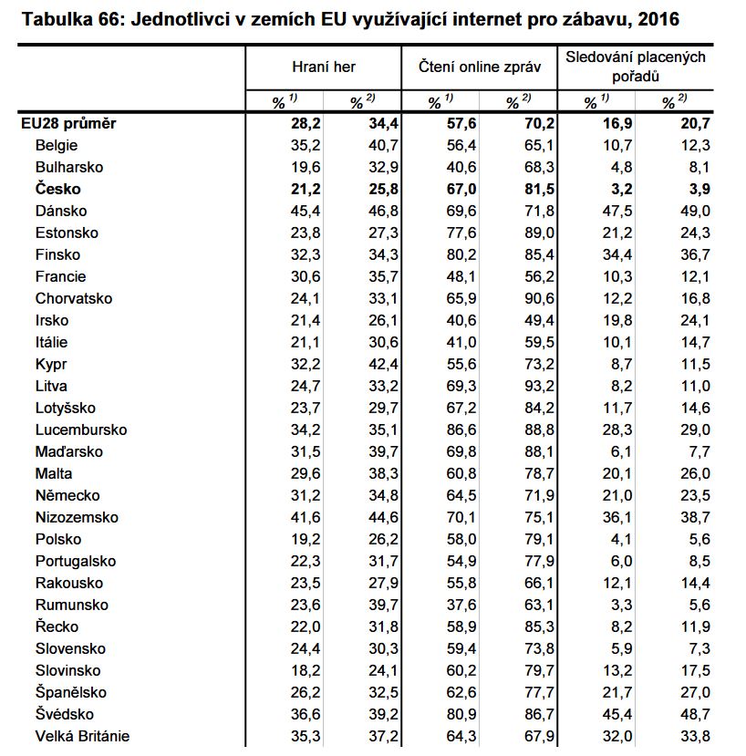 - Český štatistický úrad prišiel s mimoriadne zaujímavou štatistikou využívania internetu na zábavu