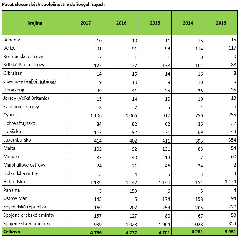 - V daňových rajoch malo ku koncu roka 2017 materskú spoločnosť historicky najviac firiem s pôvodom zo Slovenska