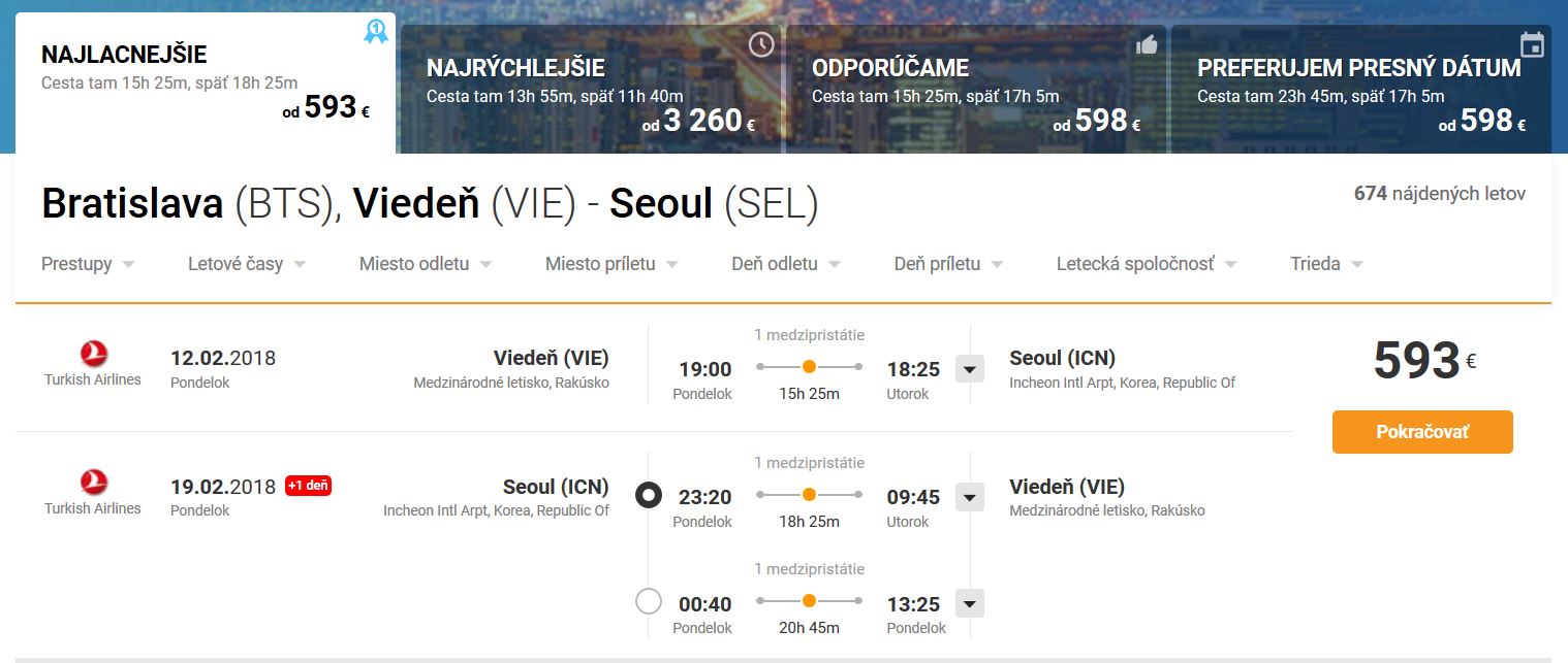 Najprv sa skúsime sústrediť na transfer. Vzhľadom na to, že Južná Kórea sa nachádza na opačnej strane zemegule, najkratší let trvá 13,5 hodiny, no ak máš cestovateľské „šťastie“, môže trvať dokonca viac ako 25 hodín. Ceny spiatočných leteniek pre jednu osobu začínajú na 593 eurách a letí sa z Viedne do hlavného mesta Seoulu. Odtiaľ sa do Pjongčangu dostaneš pohodlne vďaka novovytvorenej sieti rýchlovlakov, ktorú postavili kvôli olympiáde a pôvodne trojhodinovú cestu skráti na hodinu. Cena 7-dňového rail passu je približne 146 eur.