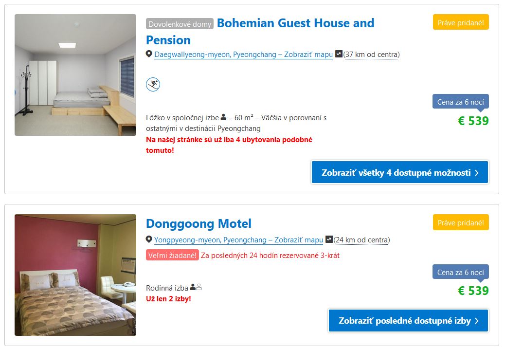 Ďalšou položkou na našom pomyselnom zozname je ubytovanie. To je, samozrejme, asi tá najťažšia časť, pretože dostať sa blízko centra diania je nemožné už pár mesiacov pred začatím olympiády. Teoreticky sa však na olympiádu ešte chceme dostať a cena za jednu noc pre jednotlivca priamo v Pjongčangu cez booking.com začína na 65 eurách a v podobnej cenovej relácii sa pohybujú aj sympatické možnosti cez airbnb, hoci tu zoženieš posteľ už za pár drobných.