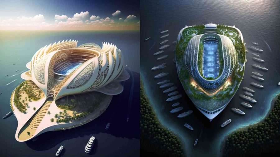 Architekti tak navrhujú kultúrne a športové centrá na mori. Polovičná loď a polovičný štadión by sa plavili vďaka obnoviteľným energiám, ktoré využívajú slnečné žiarenie a silu prevládajúcich vetrov a studených morských prúdov.