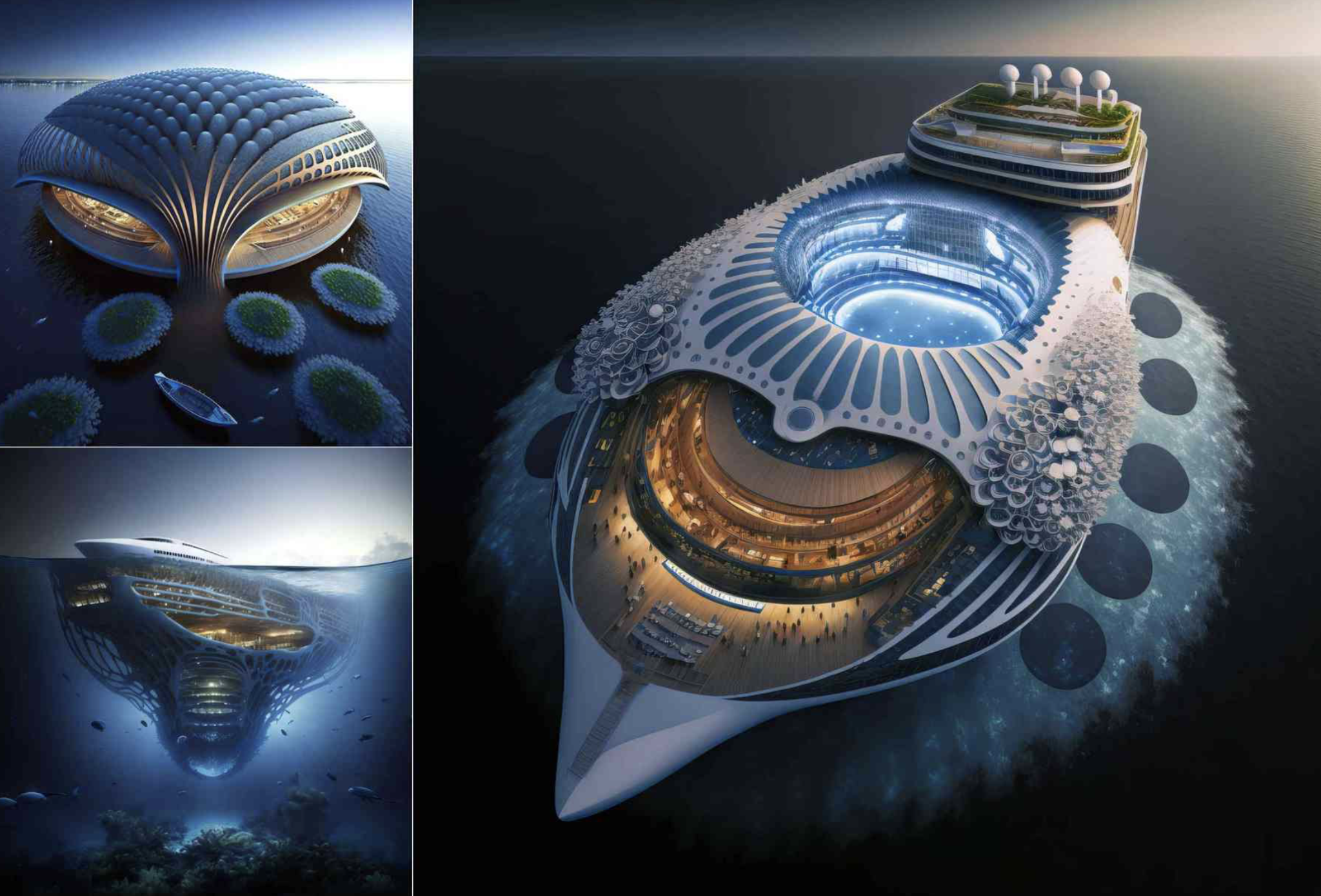Hoci ide iba o návrh, do tejto skupiny sa najnovšie dostalo plavidlo s názvom OCEANIUMS. Ako informuje The Mind Circle, ide o návrh projektu z dielne Vincent Callebaut Architectures. Je to biometrická generácia plávajúcich a udržateľných štadiónov.