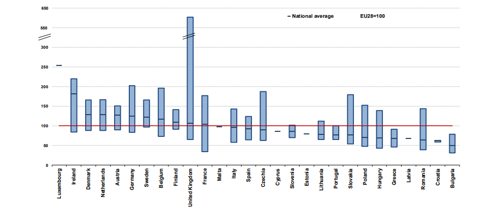 Najchudobnejším regiónom celej EÚ je severo-východné Bulharsko a regióny Bulharska sa celkovo umiestnili medzi najchudobnejšími časťami. Podobne je na tom aj Malta, Cyprus, Estónsko, Grécko, Slovinsko či Litva.