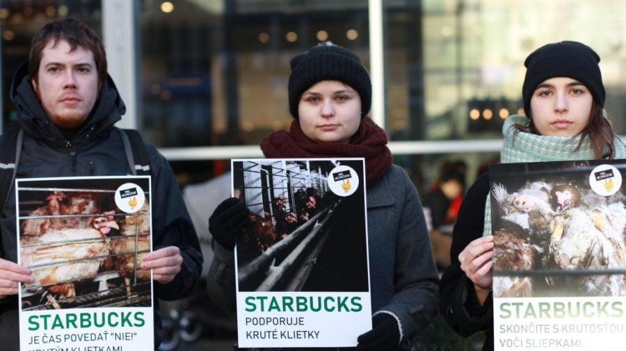 Celosvetovú online petíciu za to, aby Starbucks prestal používať vajcia z klietkového chovu, už podpísalo viac než 200 000 ľudí. Aktivisti a aktivistky z organizácie Humánny pokrok z rovnakého dôvodu včera protestovali pred jednou z bratislavských pobočiek tejto kaviarne. Poukazovali na to, že Starbucks zaostáva v dodržiavaní základných štandardov ochrany zvierat.