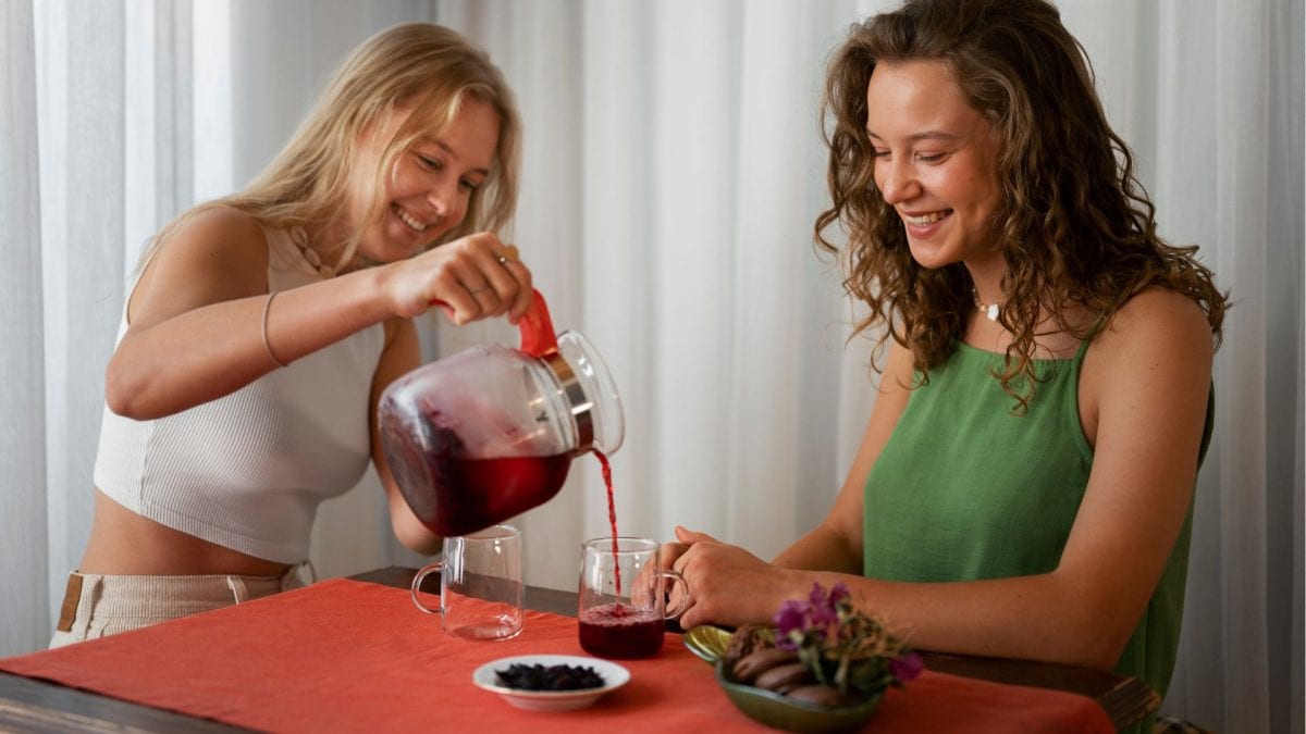 Ženy si nalievajú čaj z bazy čiernej