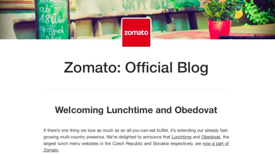 - Původem indický Zomato koupil před pár dny český portál Lunchtime.cz a když už byl rozšupnutý, koupil rovnou i slovenskou sesterskou firmu Obedovat.sk.