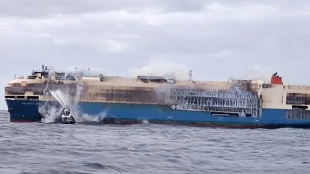- Nákladnú loď Felicity Ace zachvátili plamene pred takmer dvoma týždňami