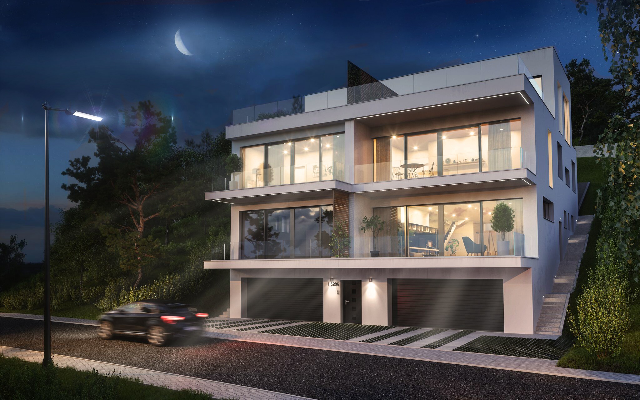 Pohodlné parkovanie pre 4 autá v krytej garáži s výťahom priamo do bytu je zabezpečením požiadaviek zodpovedajúcich súčasným trendom bývania.
