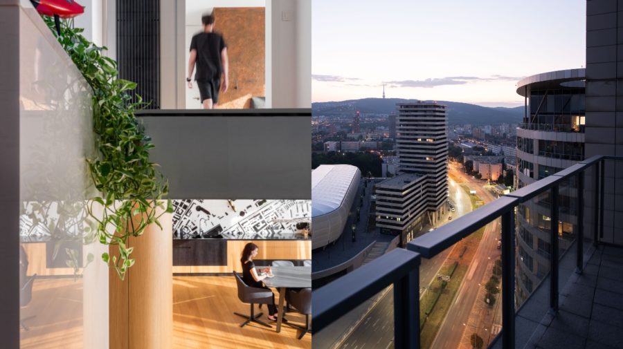 Na najvyšších podlažiach výrazného projektu sa nachádzajú mezonety, ktoré sú v dnešných dňoch čoraz vyhľadávanejšie. Jeden z nich si vzal do parády aj ateliér AT26 architects, ktorého úlohou bolo vytvoriť „trendom nepodliehajúci interiér, príjemný na bývanie a užívanie, s dôrazom na funkčnosť a kvalitu.“