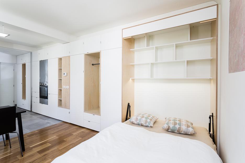 Koľko priestoru na bývanie potrebuje mladý človek pre život v meste? Život bez záväzkov, s množstvom koníčkov a záujmov? Pravdepodobne málo. Možno ešte menej než málo. Dokonca ho môže zdieľať s niekým druhým. A stále sa zmestia. Čas strávený v interiéri domova sa zúžil na čistých 8 hodín spánku. Zvyšok dňa si užívame v interiéri kancelárií, kaviarní, reštaurácií a barov. S klesajúcim počtom zakúpených metrov štvorcových tiež klesajú nároky bankových hypoték. Tak by 25 m2 na 25 rokov malo stačiť.