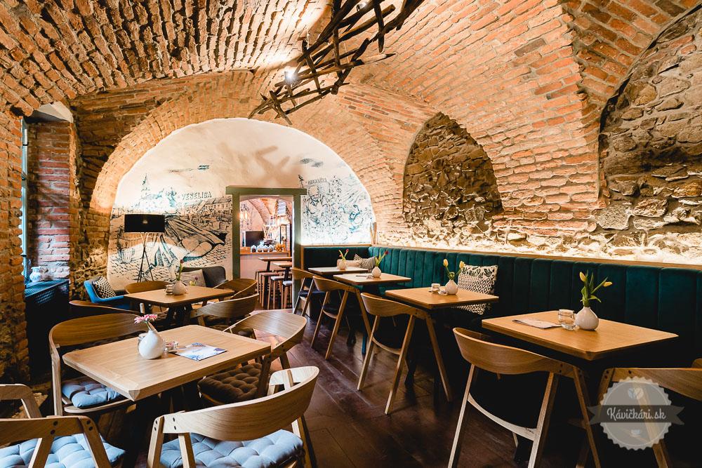 Priestor podniku je rozdelený hneď do niekoľkých častí. Všade však dominuje vinárska architektúra s klenbovými tehlovými stropmi. Pôvodná podlaha v zadnej časti prevádzky, pri prechode priestorom občas zavŕzga a možno aj práve, preto sa tu cítime ako doma.