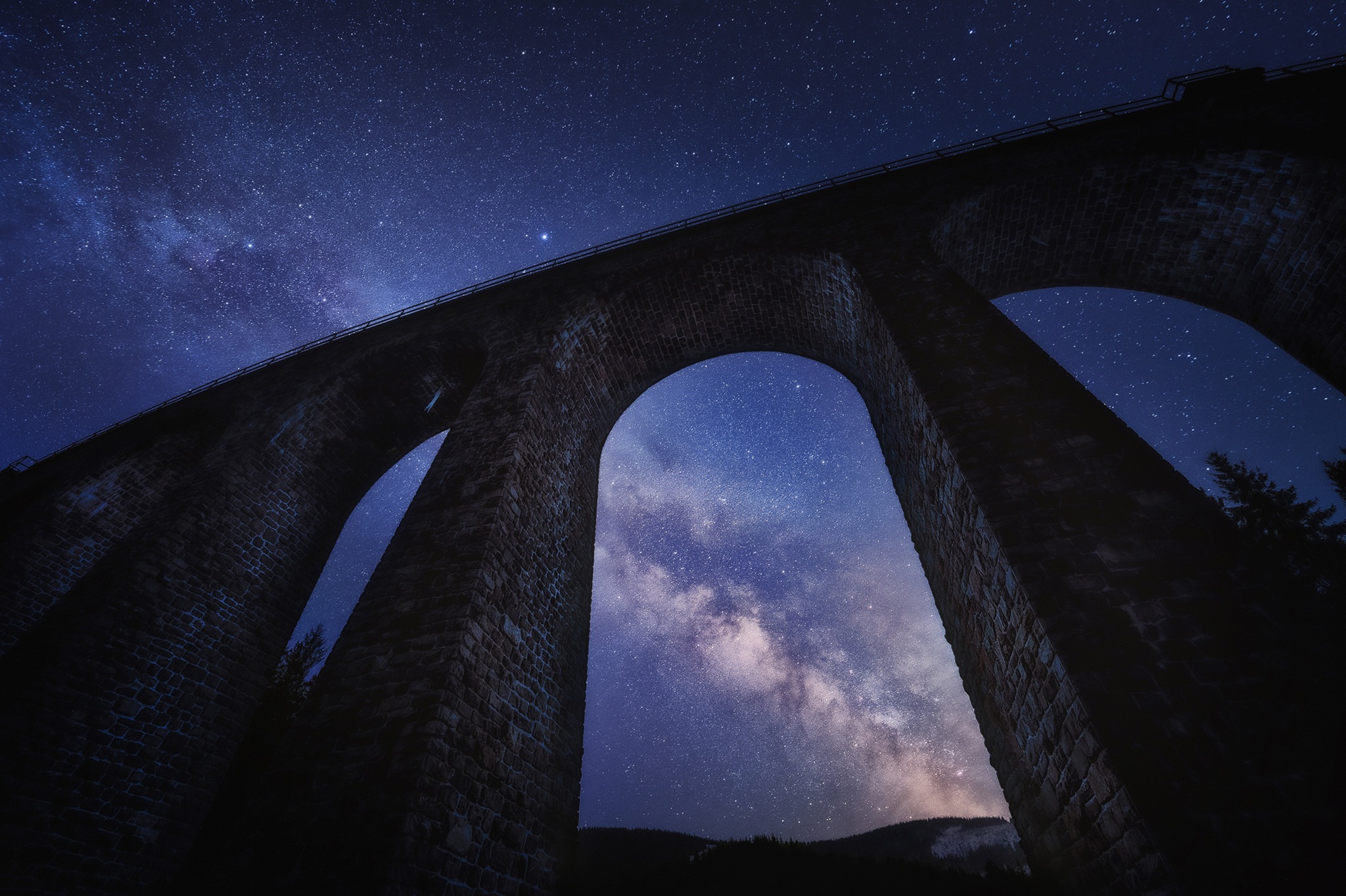 Rád fotím na výšku a zospodu, čiže popredie mám doslova nalepené na širokouhlom objektíve. Špeciálne v noci sa nedá fotiť na vyššie clonové čísla, rovina ostrosti zďaleka nemôže byť pokrytá na jeden záber. Musím si scénu rozdeliť a zvyčajne fotím na 5 rovín zaostrenia (čiže 5 fotografií). Snahou je mať ostrý záber o nekonečna až po detaily v popredí. Tie sú najdôležitejšie. Až doma zistím, či mi stačí spojiť napríklad 3, alebo potrebujem viac fotografií. Zvyčajne 3 stačia, ale vždy je lepšie mať ich viac.