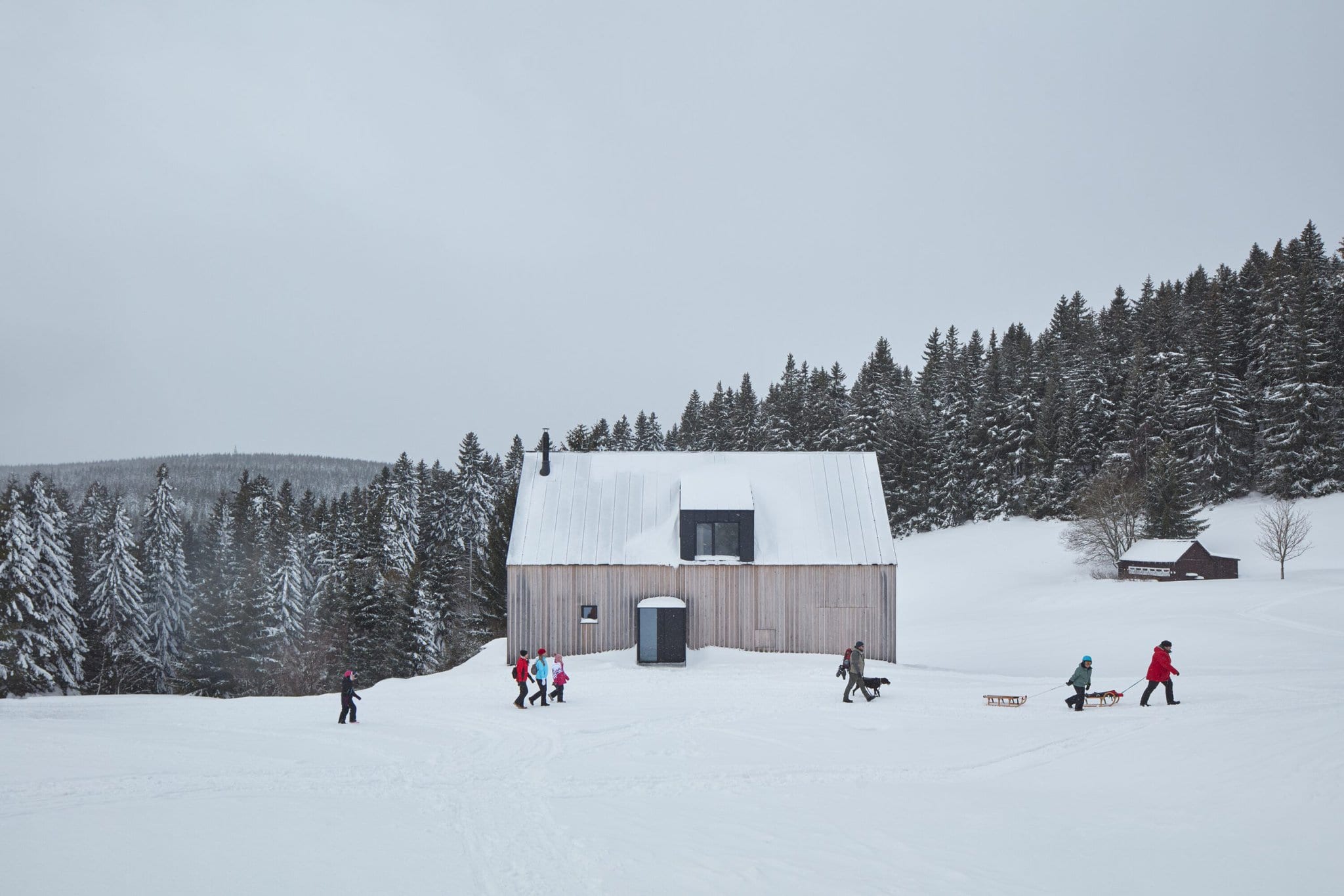 Stavba jasne čerpá z historických stavieb v Krkonošiach, využíva stáročné poznatky života v horách a transformuje ich pre potreby súčasného bývania.