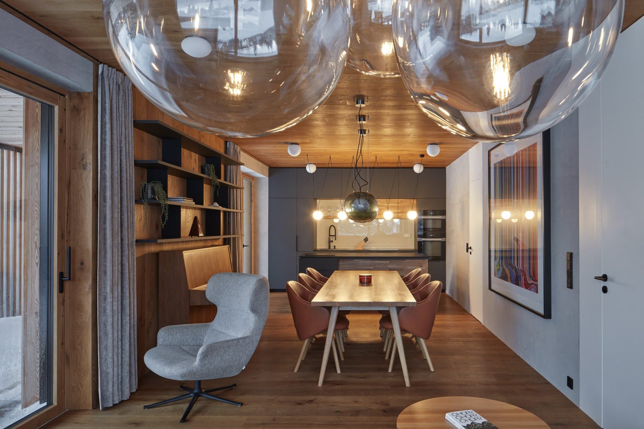 „Koncepcia interiéru súznie so striedmym charakterom domu, kedy hlavným cieľom bolo vytvoriť dôstojné zázemie pre rodinu, kde sa všetci budú cítiť príjemne aj v prípade najhorších horských búrok. V interiéri sa tak uplatňuje primárne drevo doplnené o decentnú tlmenú farebnosť a starostlivo vybrané remeselné a výtvarné prvky.“