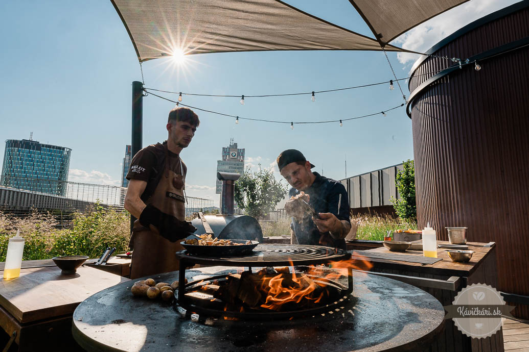 Partia šikovných mladých ľudí otvorila v Bratislave Bistro Groof priamo na zelenej streche Nív. A my sme sa na tento jedinečný koncept, založený hlavne na elemente ohňa a farmárskych surovinách, museli prísť pozrieť osobne, píšu Kávičkári.