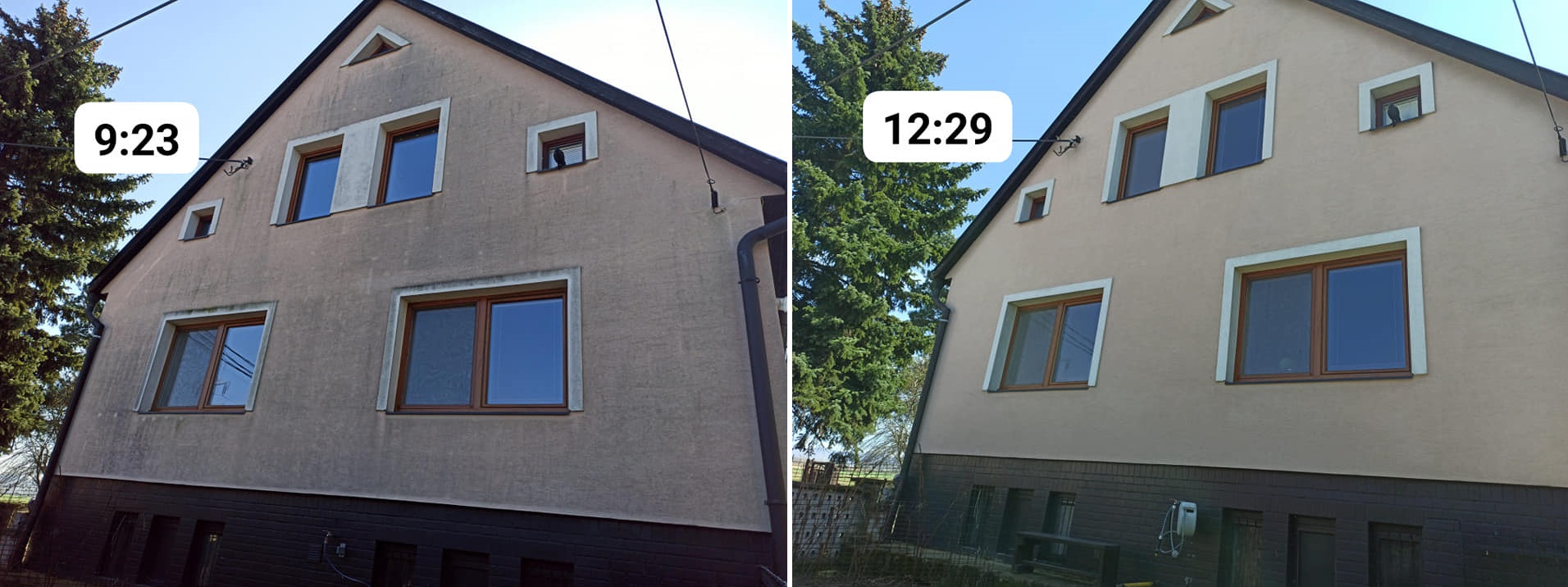 Potom sme boli u jednej pani, ktorej muž bol presne podobný prípad. Neveril, že to dokážeme umyť. Tak sme mu spravili ukážku na približne jednom metri štvorcovom – keď sme fasádu opláchli, bola ako nová. Až vtedy nám uveril.
