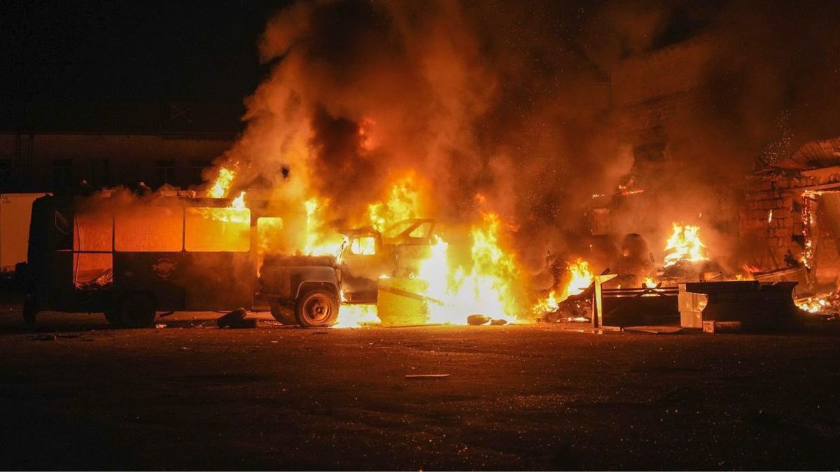„Našťastie v tejto chvíli nie sú žiadne informácie o zabitých,“ napísal na sociálnej sieti. Požiare podľa starostu vypukli v jednom miestnom podniku a v garážach.
