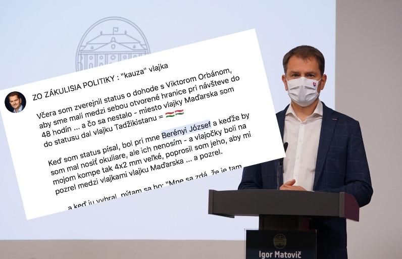 Na Facebooku Igora Matoviča to včera žilo asi ako nikdy. Pohoršenie vyvolal symbol vlajky, ktorý v statuse použil. Premiér na Facebooku informoval o rokovaní s Maďarskom, že sa oba štáty dohodli na 48-hodinových pobytoch svojich občanov na Slovensku, resp. v Maďarsku.