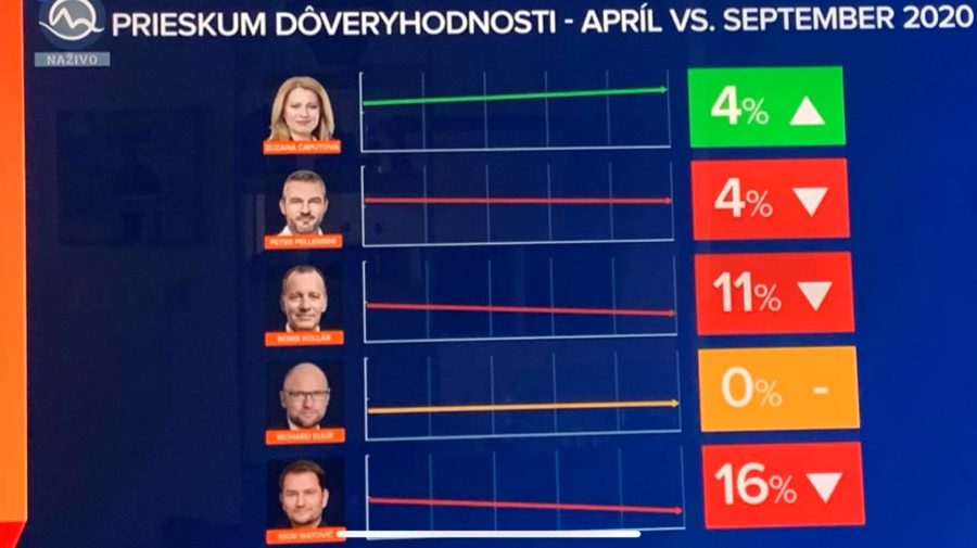 Matovič zaznamenal obrovský prepad v dôveryhodnosti. Najdôveryhodnejšou političkou je prezidentka Čaputová